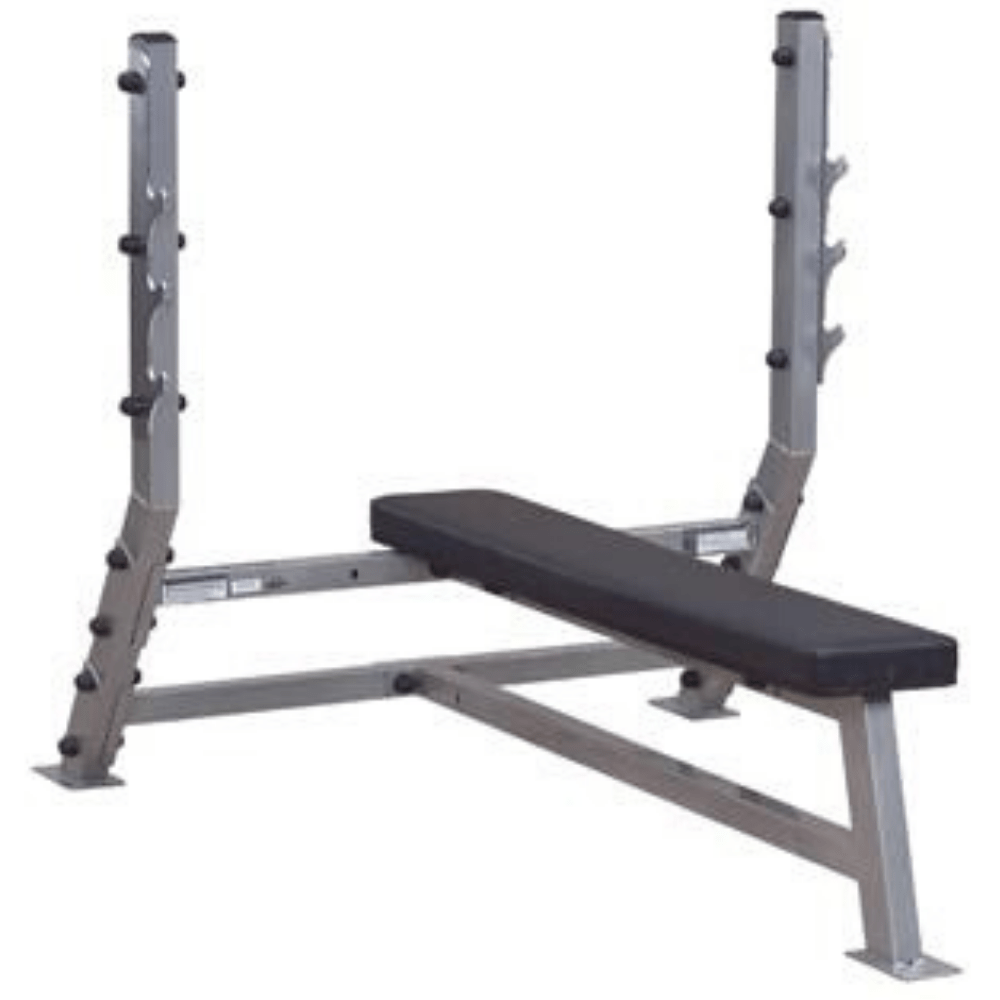 The Body-Solid Flat Olympic Bench is the best companion to all workouts. Perfect for bench and other chest press movements.
