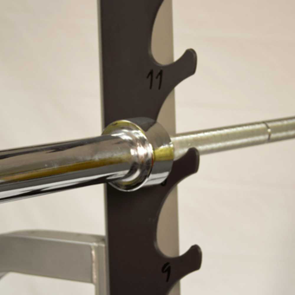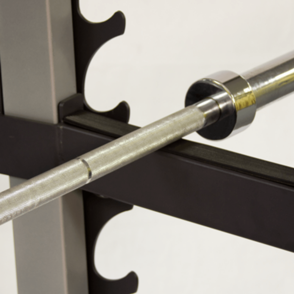 - 14-position gunrack can handle over 454kg and gives the user the ability to walk the bar up and down without removing plates.