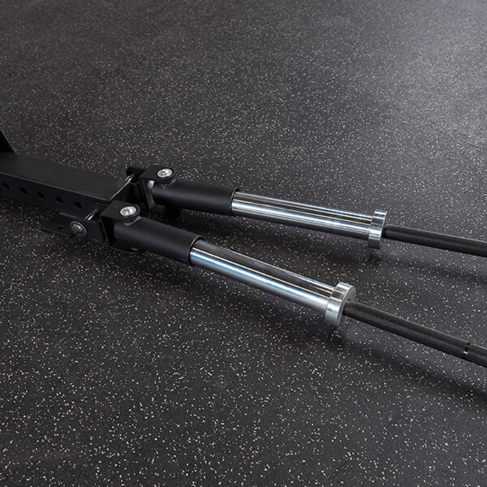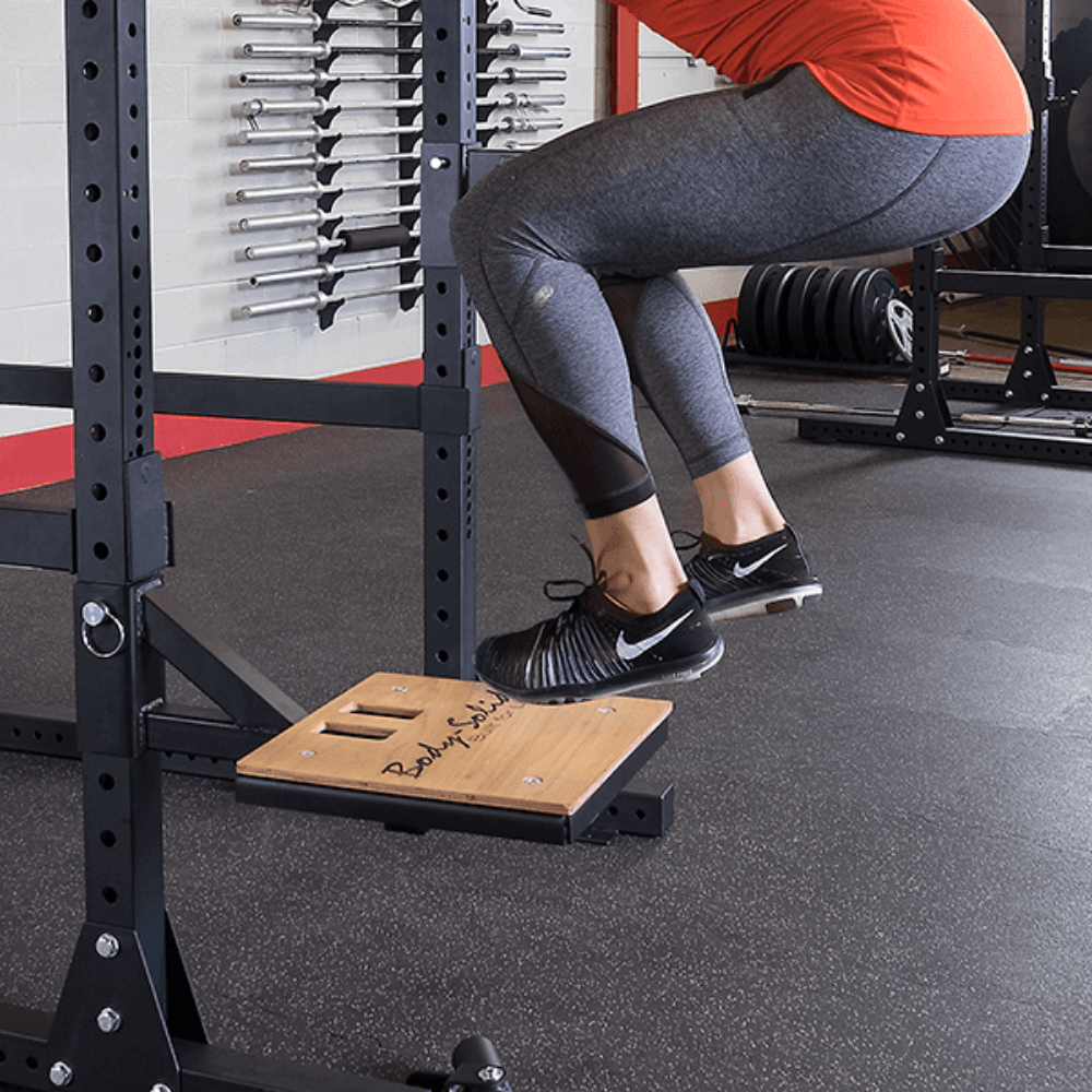 The 1” hole spacing for the safety spotter bars means you will always find that perfect stretch without compromising safety. The SPR1000 features a rear expansion which creates a perfect space for a spotter and allows extra space for weight horns and other gym storage options.