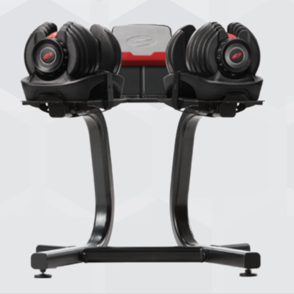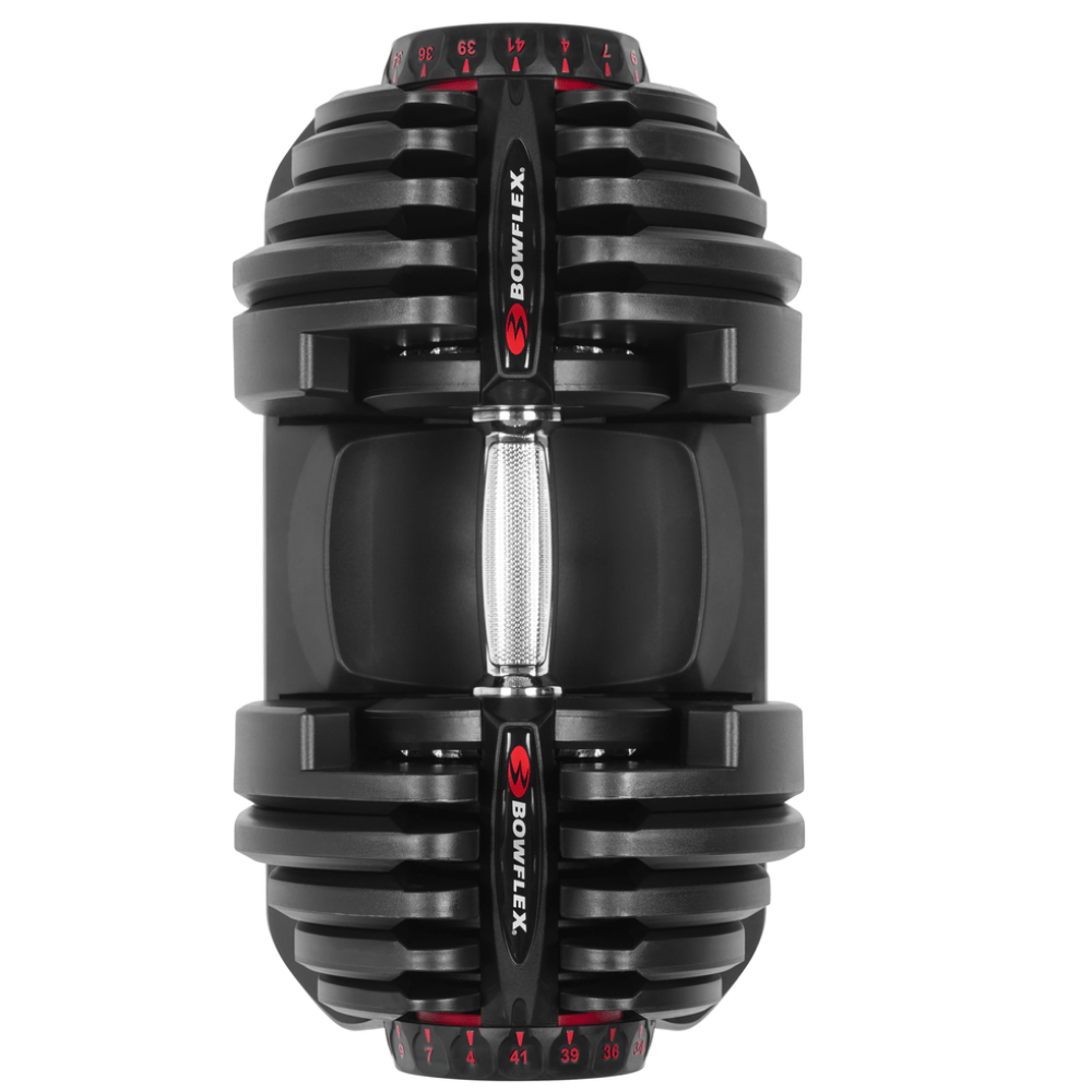 These adjustable dumbbells have weights that adjust from 4 kg (10 lbs) to 41 kg (90 lbs) in 5 lb. increments. Easy-to-use selection dials for adjusting weights. Replaces up to 17 pairs of dumbbells. Great for toning and strength training exercises for both upper and lower body including heavy leg lifts. Compatible with the free Bowflex SelectTech® training App for iOS and Android.