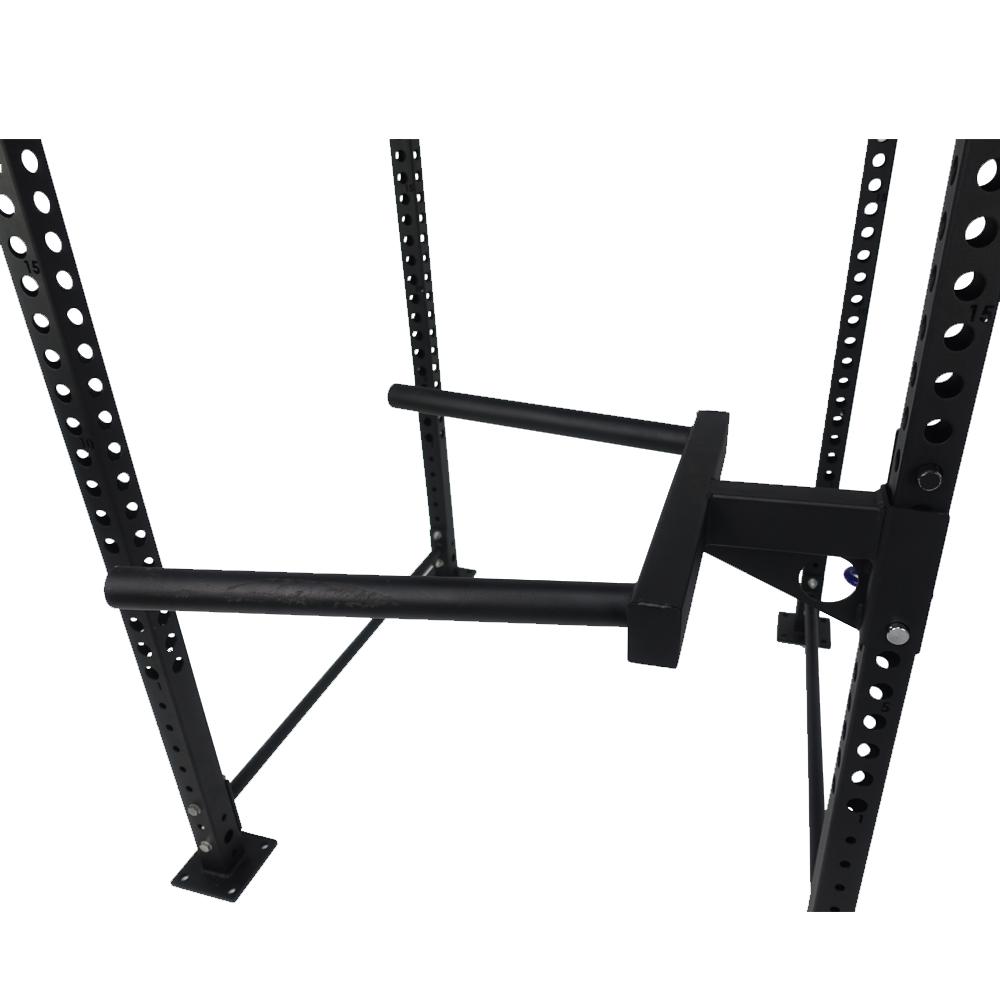 Unlike a majority of power rack dip stations on the market, the Force USA Dip Station can be fixed anywhere on the rack both on the front and back of the uprights or even on the side which are normally used for storage sleeves. This also means you can adjust the height of the station to suit everyone and with one fixing point it makes it simple and easy to attach and detach the station