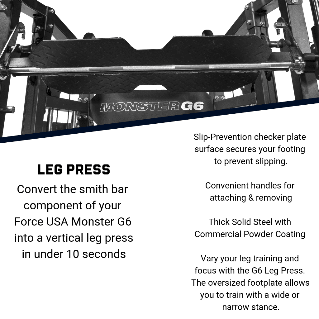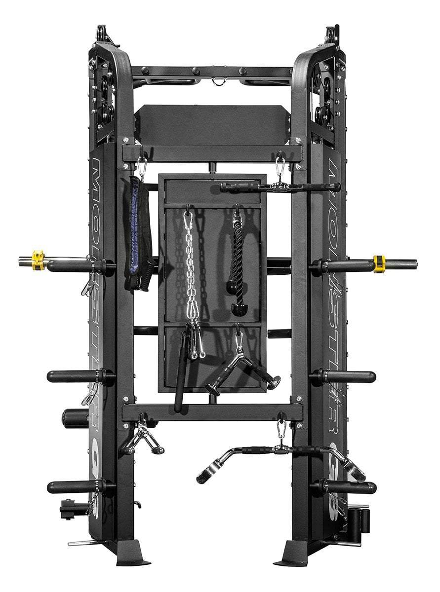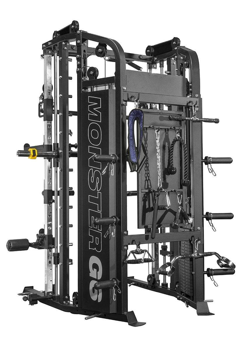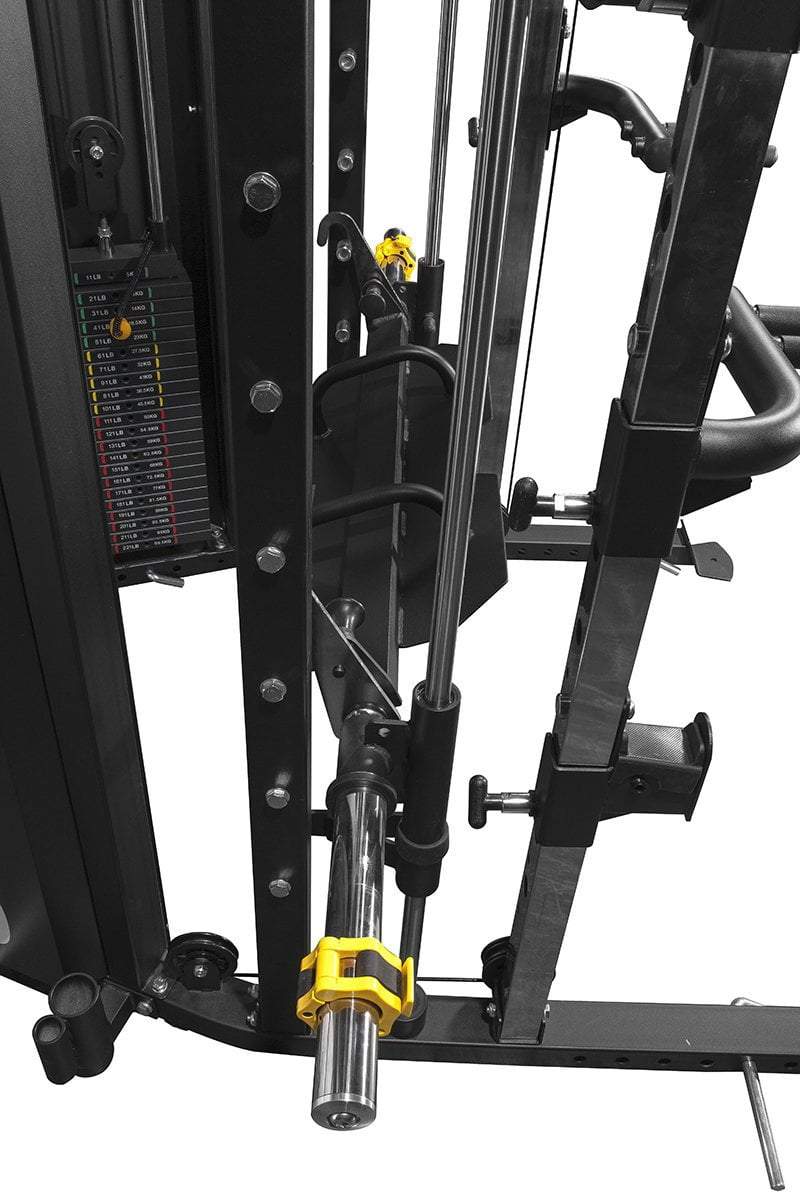 Loaded with a huge range of attachments to give you the competitive edge, The Force USA G6 All-In-One Trainer has included Leg Press, Core Trainer, Knee support for lat pull down, Lat Pull Down Bar, T-Bar, Olympic Lock Collars, Multi-Grip Dip Handles, Barbell J-hooks, Safety Spotting Arms & Many More attachments. Keep your training space clean and tidy with built-in storage. The Force USA development team have added 6x olympic sized weight plate holders, Olympic & Standard Barbell Holders & Storage Hooks for all of your attachments.
