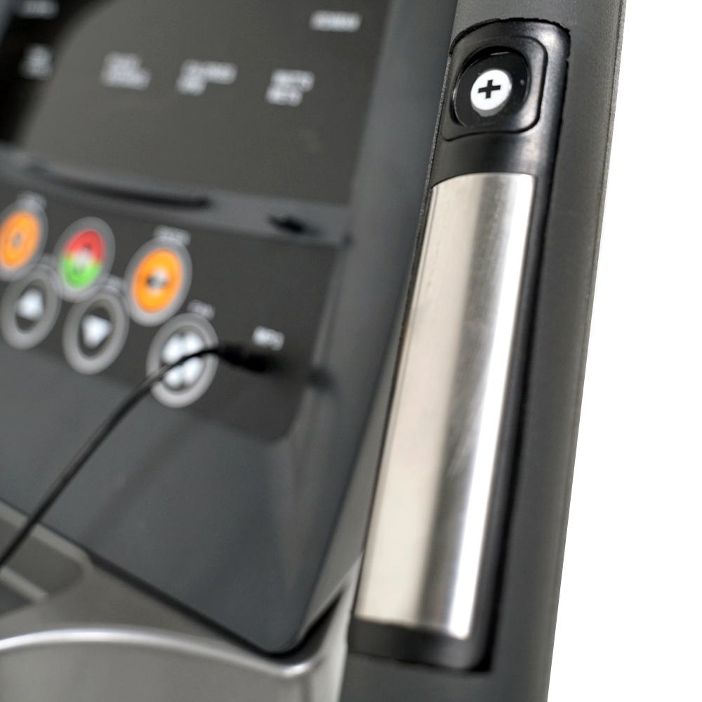 Vortex commercial upholstery ensures a comfortable workout with a moulded triangular comfort grove and a quick adjustment knob. |