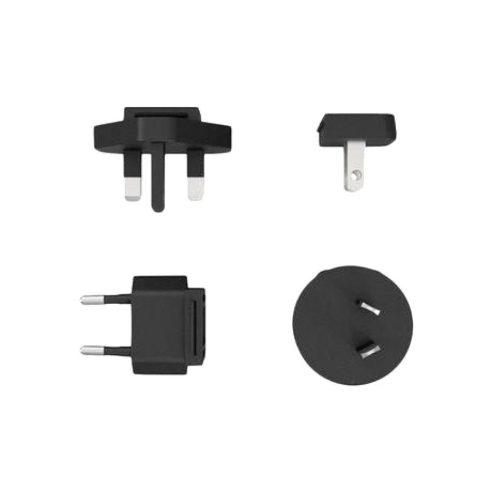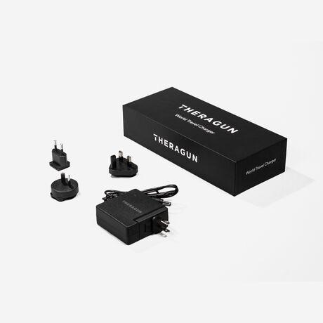 The World Travel Charger includes a set of 4 AC plugs with prongs that directly support outlets in North America, United Kingdom, Continental Europe, Russia, Korea, Australia, Hong Kong, Brazil, and Gulf Countries. This is a must-have tool for those that travel with their Theragun. The G3PRO World Travel Charger is covered with a 1-year limited warranty.