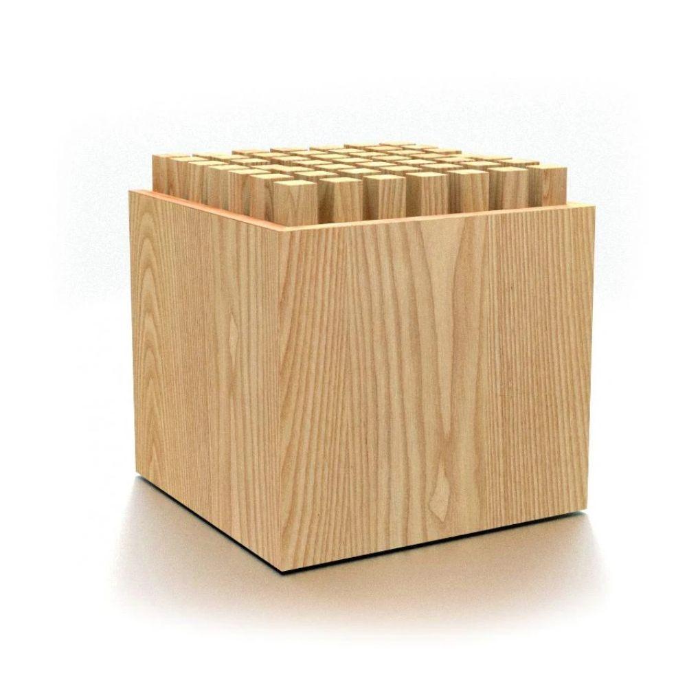 Your body will shape its own mould in the wooden block surface, enabling a true ergonomic sitting position. It defies logic to think that natural wood can be comfortable- the HedgeHock is, however, a unique sitting experience! The 49 solid wood blocks are individually spring-suspended within the outer wood cube.