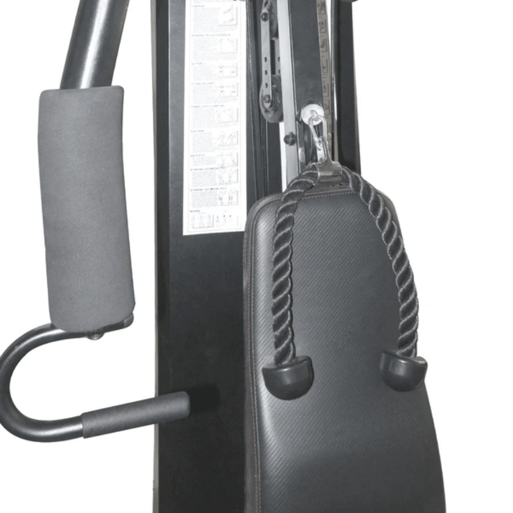 - Lat Pulldown Bar, Curl Bar, Tricep Rope, Single Handle and Ankle Straps included