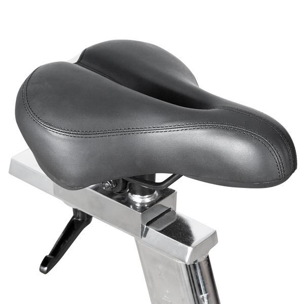 To keep track of your progress, this spin bike features a large LCD display to keep track of your workout progress with measurements such as calories, distance, odometer, pulse, speed, time and cadence (RPM). Pulse sensors are built right into the high-grip PVC coated handlebars for convenient pulse readings. just like you’re cycling on the road, with smooth pedal strokes and a consistent cadence.