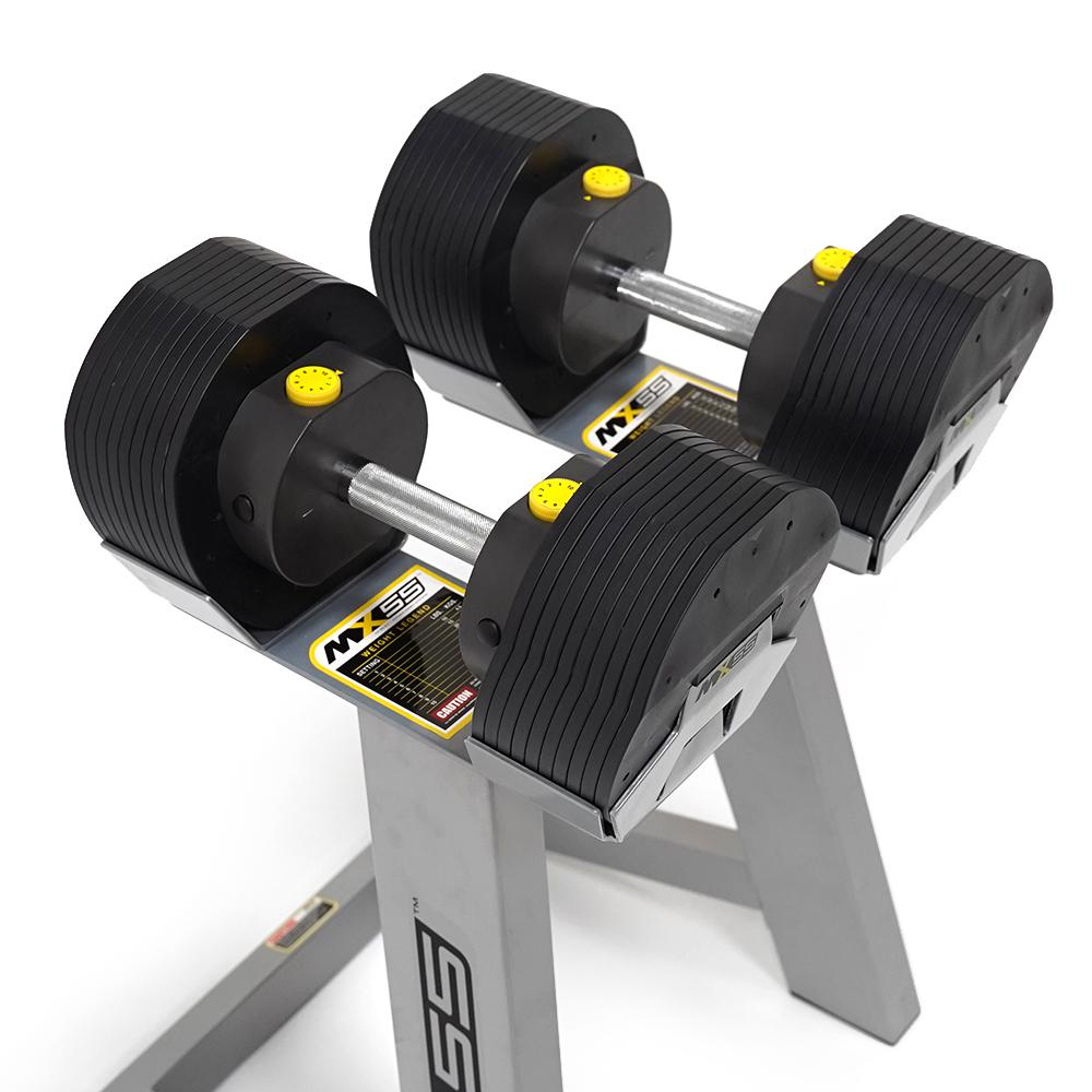 The MX55 adjustable dumbbells are the ultimate must-have for the home gym. Not only do they look good, but they also deliver all the pro-style features you would expect from gym quality fixed dumbbells, including safety, durability and rapid weight selection. Easily load a single pair of handsets with the desired training weight, to replicate and equal the performance of a fixed commercial-grade 10-piece dumbbell set.