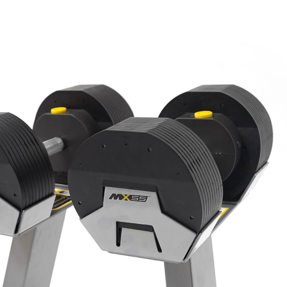 While there are many exciting features to the MX SELECT patented adjustable dumbbell design, the MX55’s best-selling point is the way it feels in the hand, combined with the smooth operation of the locking rack and pinion system, for seamless weight transition between reps.